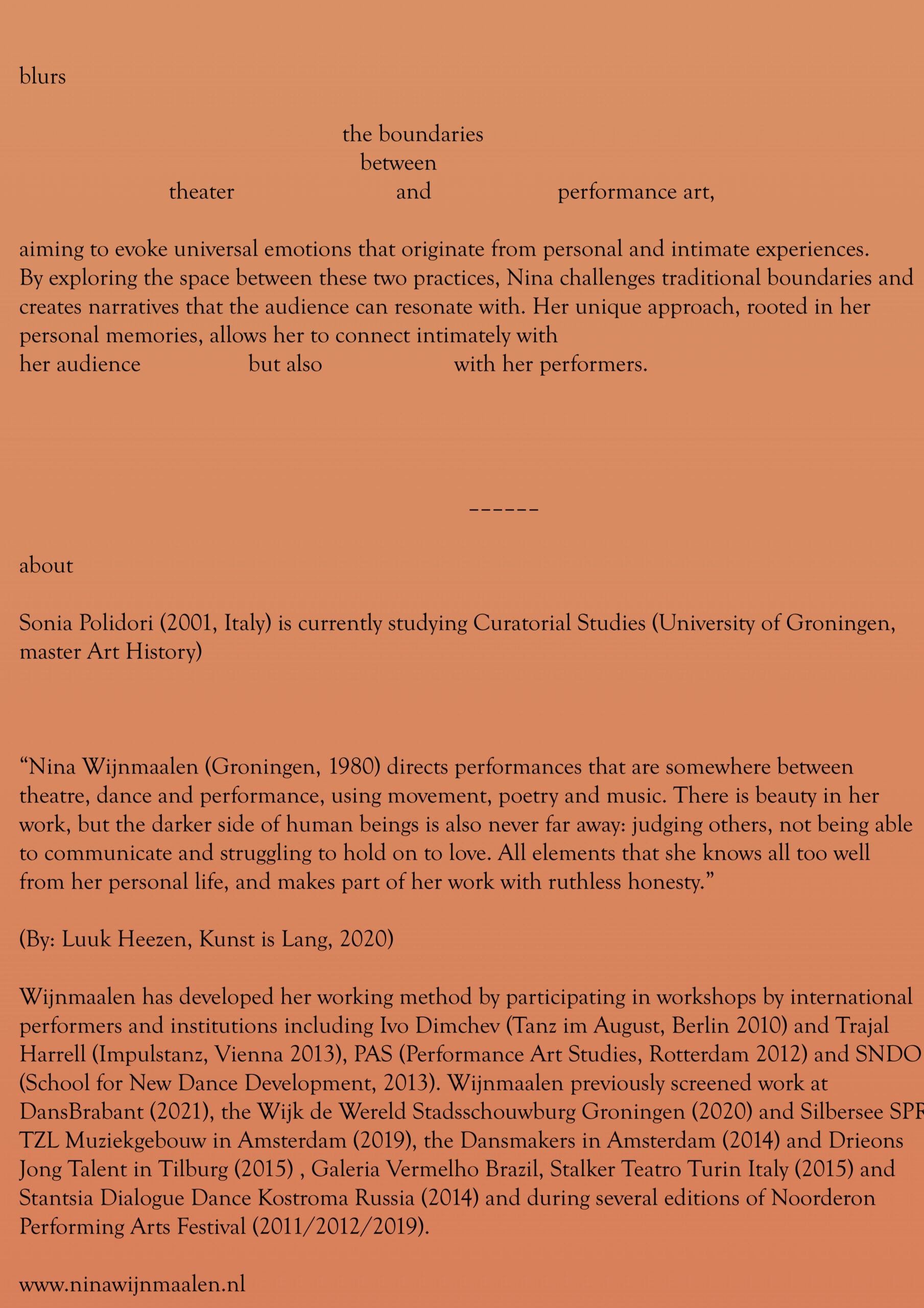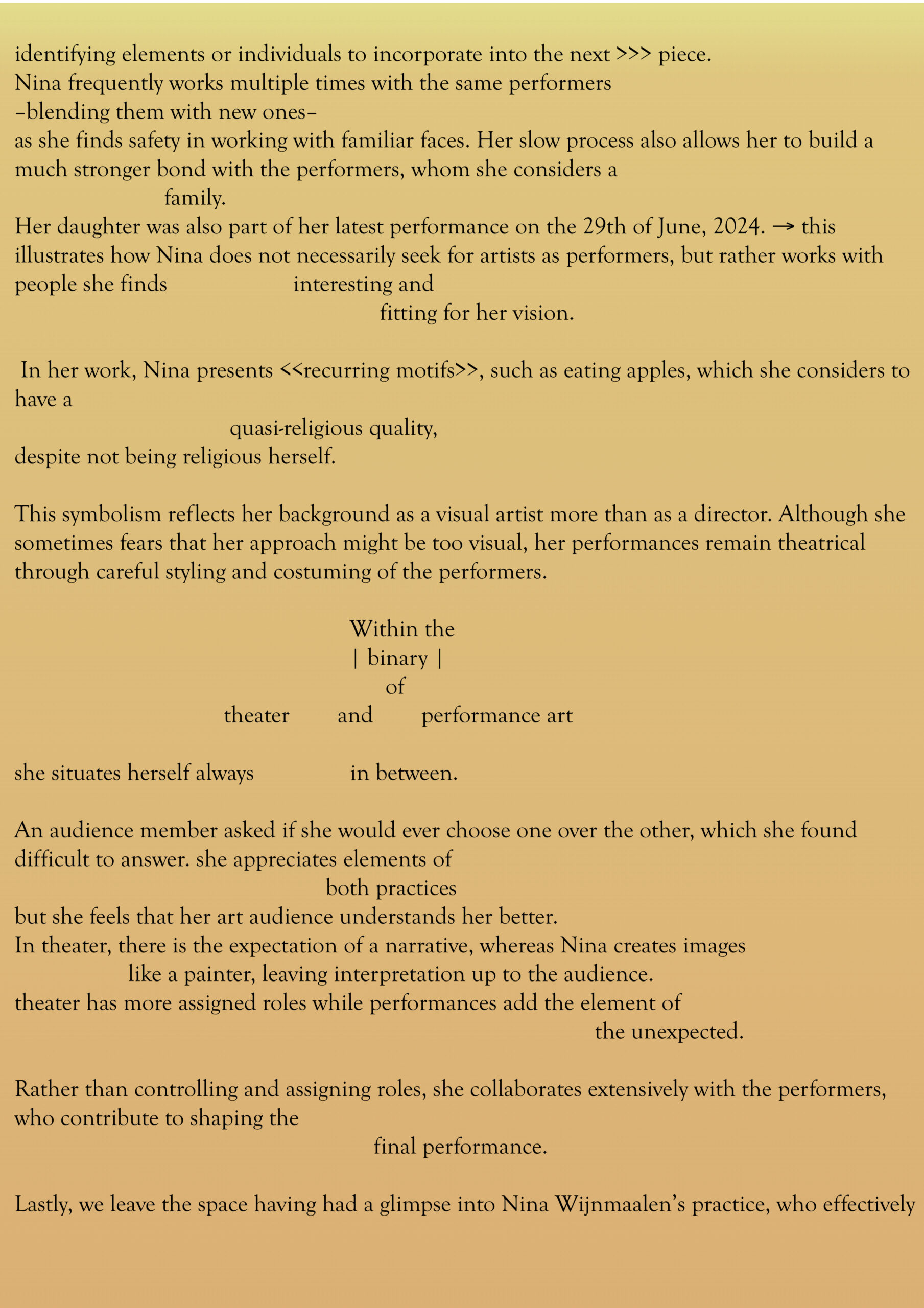 A recap of the artist talk with Nina Wijnmaalen (June 28, 2024) by Sonia Polidori,